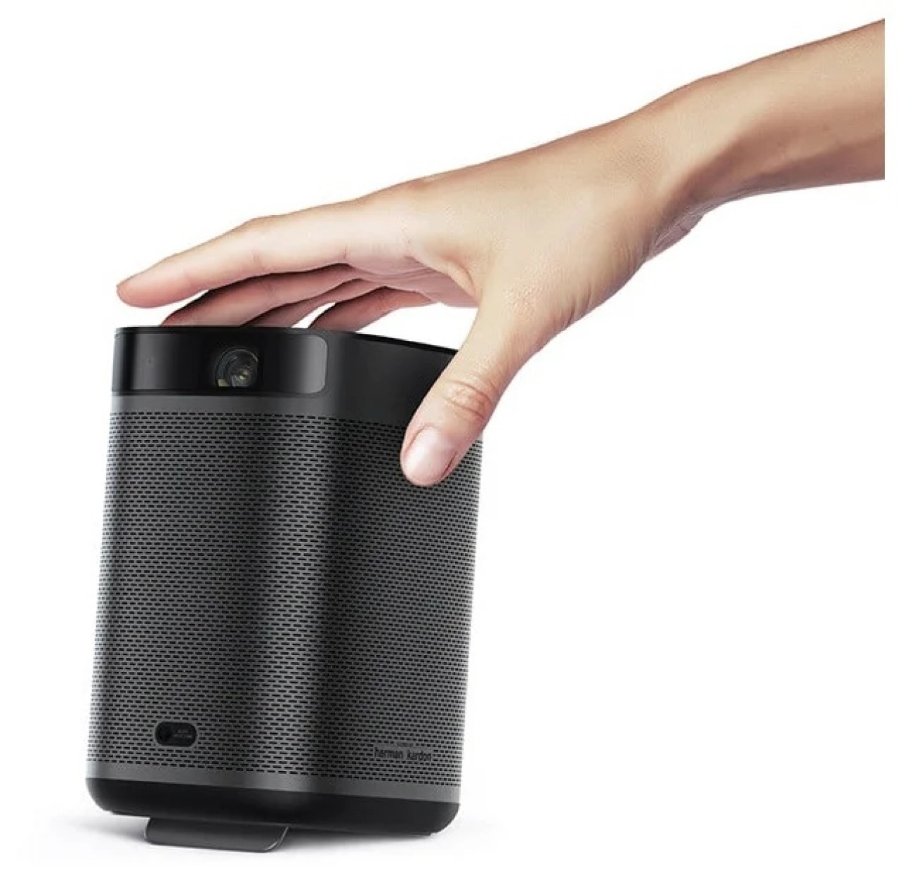 Проектор XGIMI MoGo Pro+ работает на двух колонках Harman-Kardon. Звук профессионально настраивается лабораторией Gold Ear Lab, это означает, что MoGo Pro+ хорошо сбалансирован и идеально подходит для любого вида музыки. Вы также можете использовать его в качестве внешнего динамика через Bluetooth или 3,5-миллиметровый аудио кабель. Высота проектора составляет 14,7 см, а вес - 0,9 кг. Как и размер бутылки с водой, которая не занимает много места и может быть легко помещена в сумку.