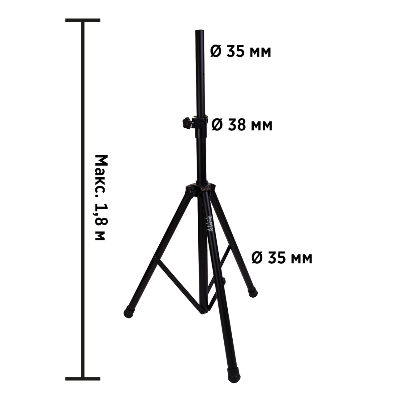 ROCKDALE 3302_T speaker stand – прочная и устойчивая стойка, специально разработанная для монтажа акустических систем. Особенность модели – возможность быстрой регулировки высоты. Высота может быть настроена до 180 см. Это усиленная модель стойки, которая отличается высокой надёжностью благодаря использованию в конструкции цельнометаллических узлов. Модель имеет достаточно небольшой вес и при этом может выдерживать оборудование весом до 50 килограмм. Стойка ROCKDALE 3302_T устанавливается на трёх устойчивых раскладывающихся ножках с противоскользящими резиновыми наконечниками. Улучшенная телескопическая конструкция обеспечивает плавную регулировку высоты и надёжное закрепление. Диаметр трубки стойки – 3,5 см. Стойка имеет устойчивое к царапинам и механическим повреждениям покрытие черного цвета. Модель легко складывается в компактную низкопрофильную конструкцию для хранения и транспортировки.