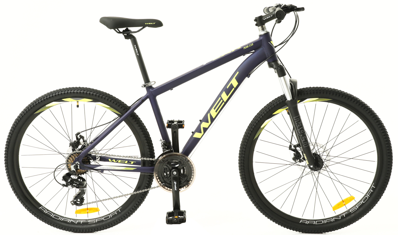 Welt Peak 2.0 D относится к велосипедам начального уровня. Рама Alloy 6061 изготовлена из алюминиевого сплава, поэтому её выносливость находится на очень высоким уровне. Модель обладает прочными покрышками с глубоким протектором Radiant 2,10. На велосипед установлены надёжные дисковые механические тормоза Artek MD-13. Переключатель Shimano TY-300D помогает комфортно и вовремя переключать скорости.