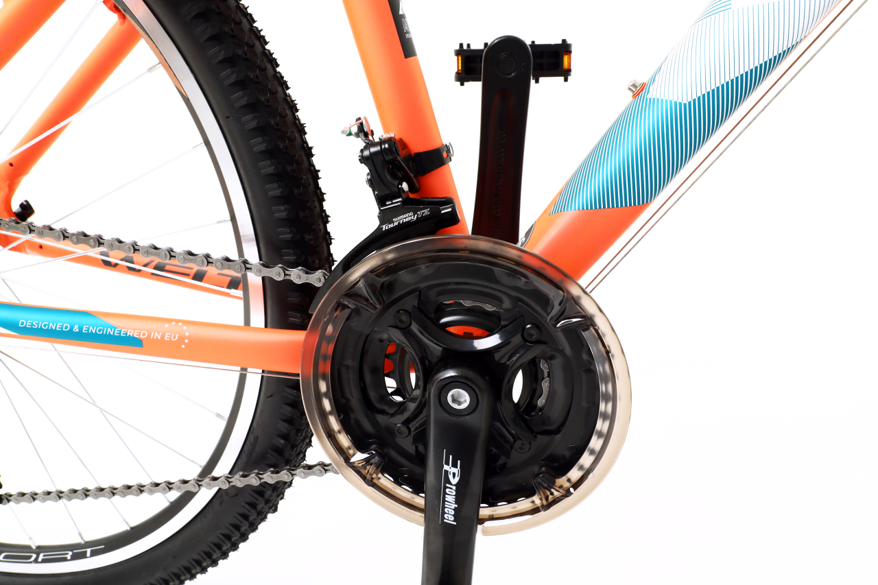 Floxy 1.0 V 26 - женская модель начального уровня для прогулок. Хороша для нерегулярного использования на плоском рельефе в спокойном режиме езды. Простые и надежные V- образные тормоза легко обслужить и настроить дома, без посещения мастерской. Относительно небольшой диаметр колеса делает этой велосипед универсальным для использования как взрослыми, так и подростками. 21 скорость, амортизационная вилка с ходом 60 мм, широкое седло, два размера высоты рамы.