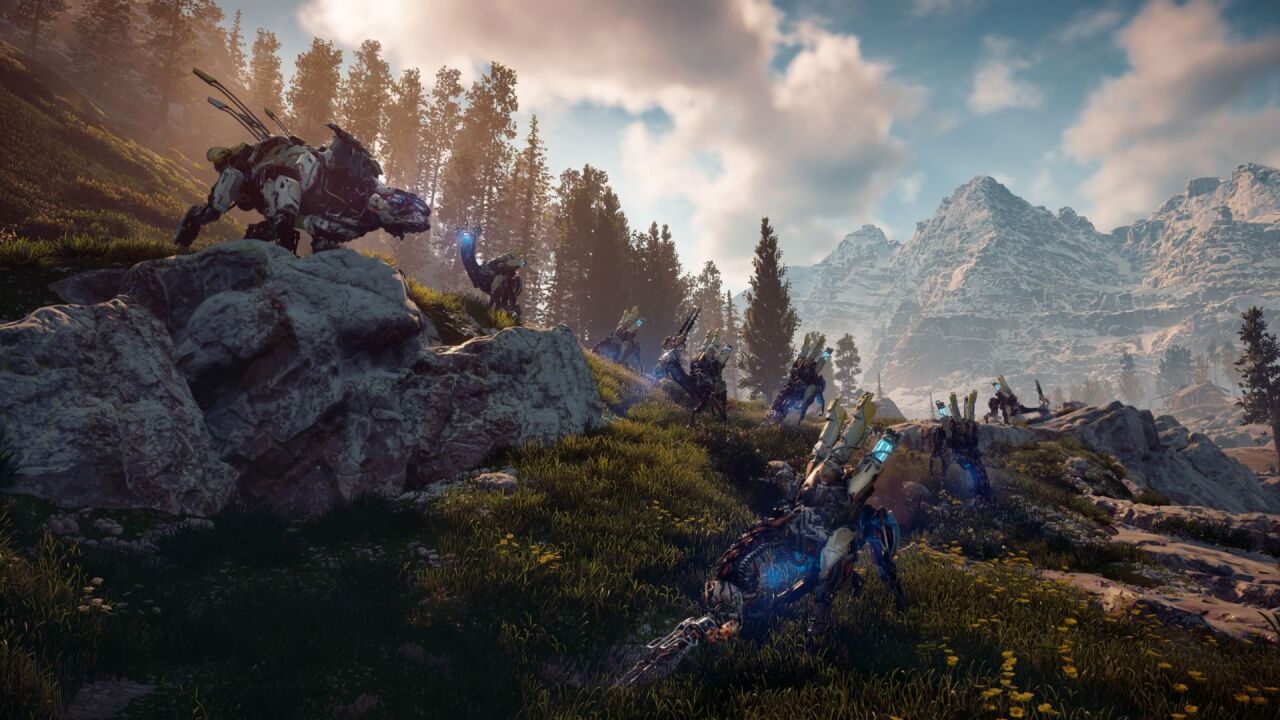 Необыкновенный открытый мир с полностью живой природой – одна из многих фишек Horizon Zero Dawn. В игре вам предстоит помочь главной героине не только выжить, но и разгадать загадку гибели цивилизации и раскрыть тайну появления механических животных. Раскрытие этих тайн может спасти человечество.